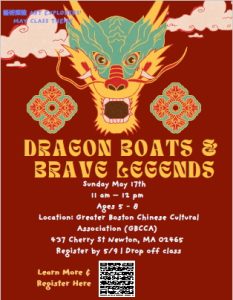 “Dragon Boats & Brave Legends” We’ll read The Year of the Dragon, learn the Chinese character dragon (lóng); we’ll make dragon boats from egg cartons.