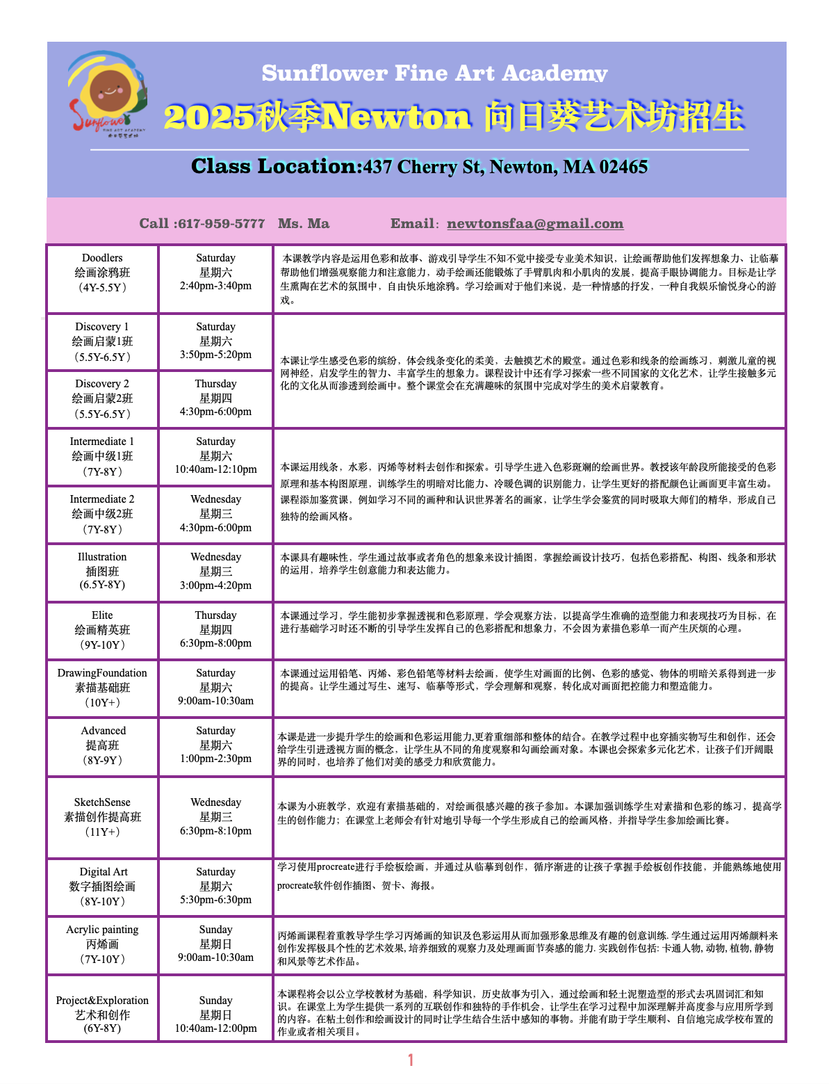 The Sunflower Fine Art Academy has proudly served the community for 10 years. Founded by Lynn Ma, a seasoned educator with over 28 years of experience in children's art education, the studio is dedicated to nurturing creativity and artistic expression in young minds.